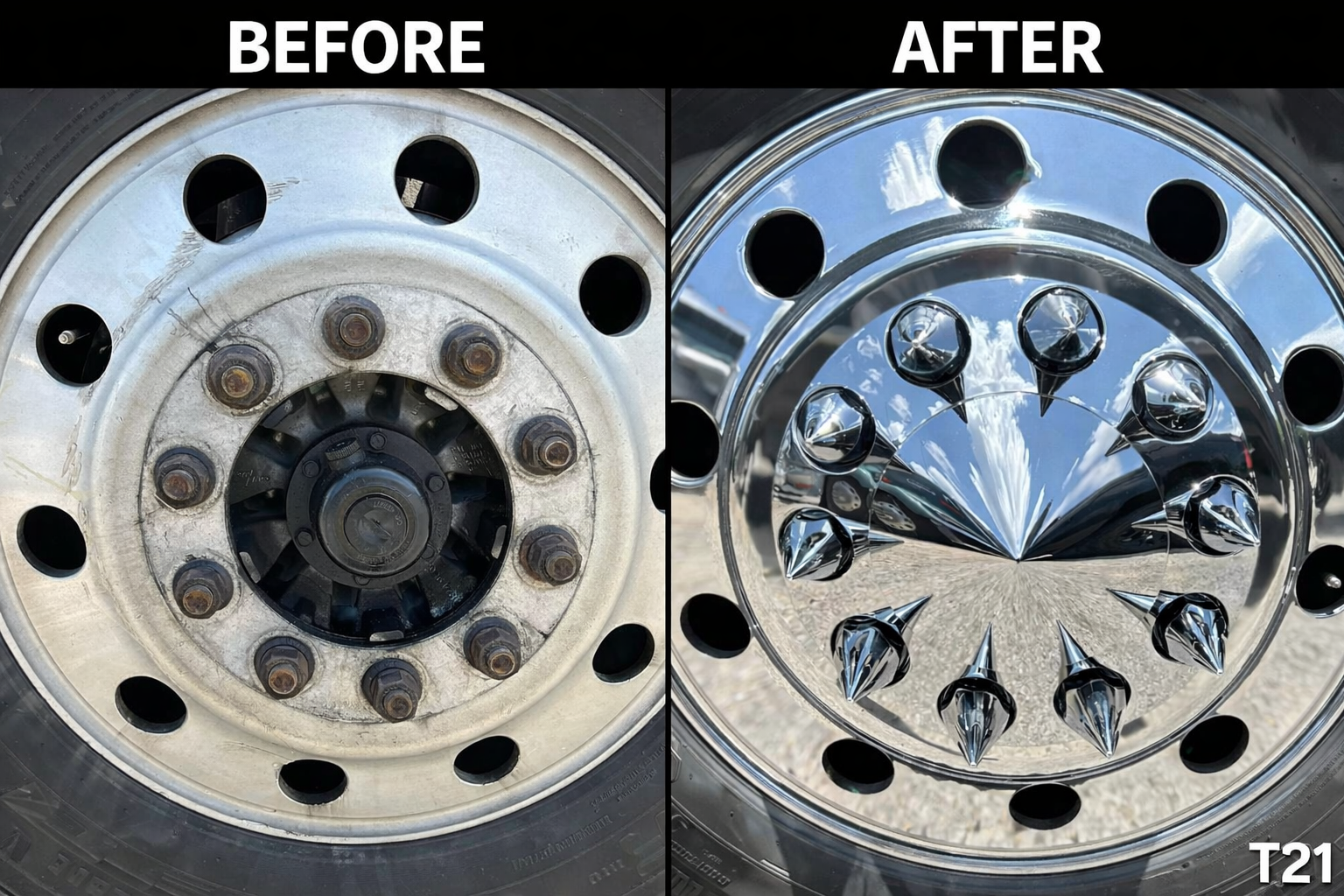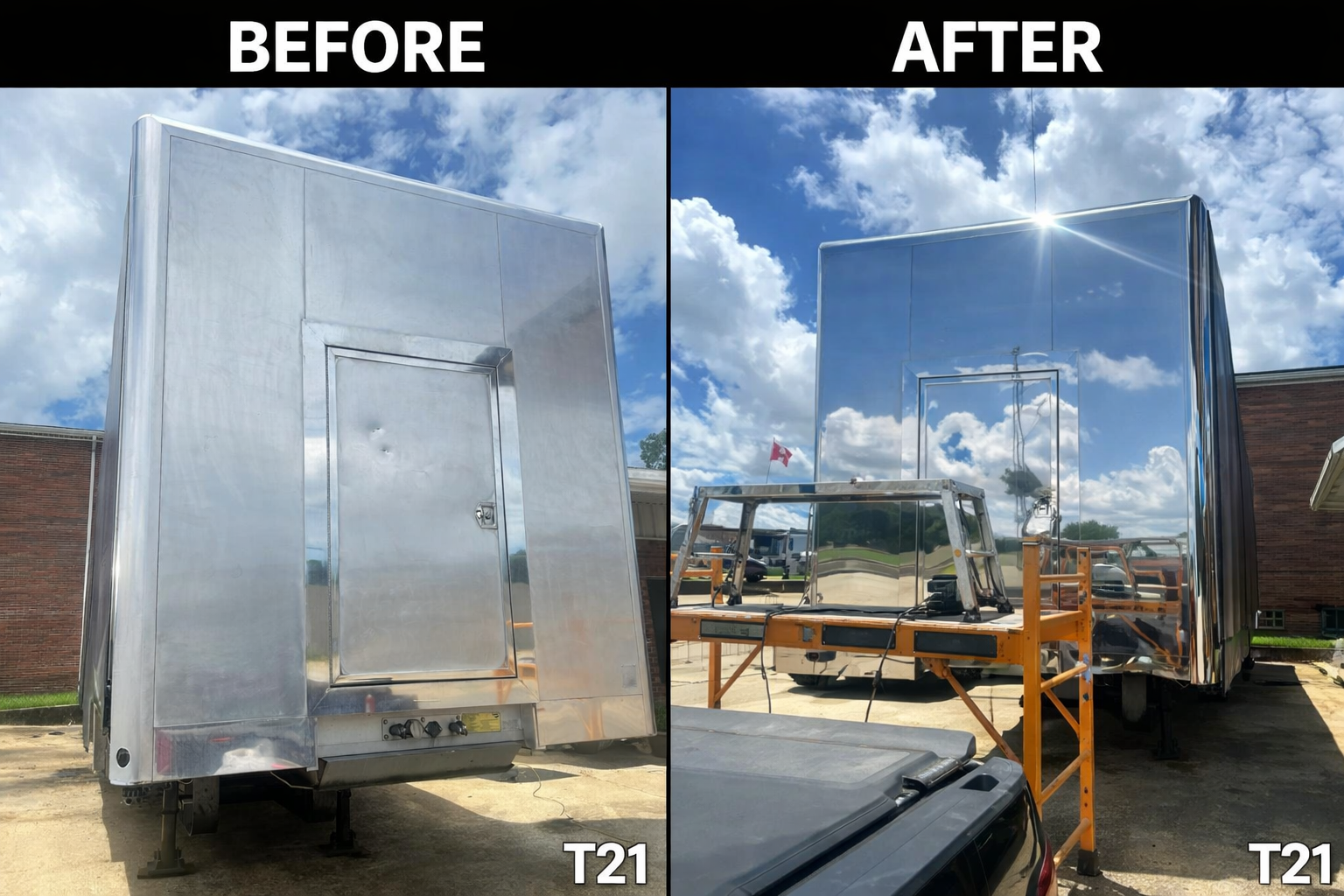 At T21 Metal Polishing, we pride ourselves on our specialized expertise in polishing and detailing. We are dedicated to delivering exceptional results that leave our clients impressed. We specialize in semi-truck chrome polishing, truck detailing, and cleaning. Explore our work and see how we can bring out the best in your vehicles.